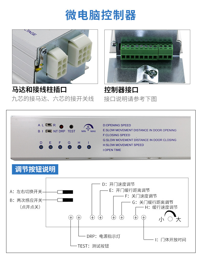 自動(dòng)玻璃門由主控制器、感應(yīng)探測(cè)器、動(dòng)力馬達(dá)、感應(yīng)門扇軌道、門扇吊、同步皮帶、下部導(dǎo)向系統(tǒng)等。自動(dòng)門工作流程:首先是感應(yīng)探測(cè)器探測(cè)到有物體進(jìn)入的時(shí)候,就會(huì)將信號(hào)發(fā)給主控制器,主控器進(jìn)行判斷后,將信號(hào)傳給動(dòng)力馬達(dá),動(dòng)力馬達(dá)就開(kāi)始進(jìn)行緩慢的運(yùn)行,將動(dòng)力傳給同步帶,然后由同步帶帶動(dòng)著門扇吊將自動(dòng)門開(kāi)啟,自動(dòng)門在關(guān)門的時(shí)候由主控制器判斷,如果要是有關(guān)門的需求就通知?jiǎng)恿︸R達(dá),然后動(dòng)力馬達(dá)自動(dòng)關(guān)閉感應(yīng)門。